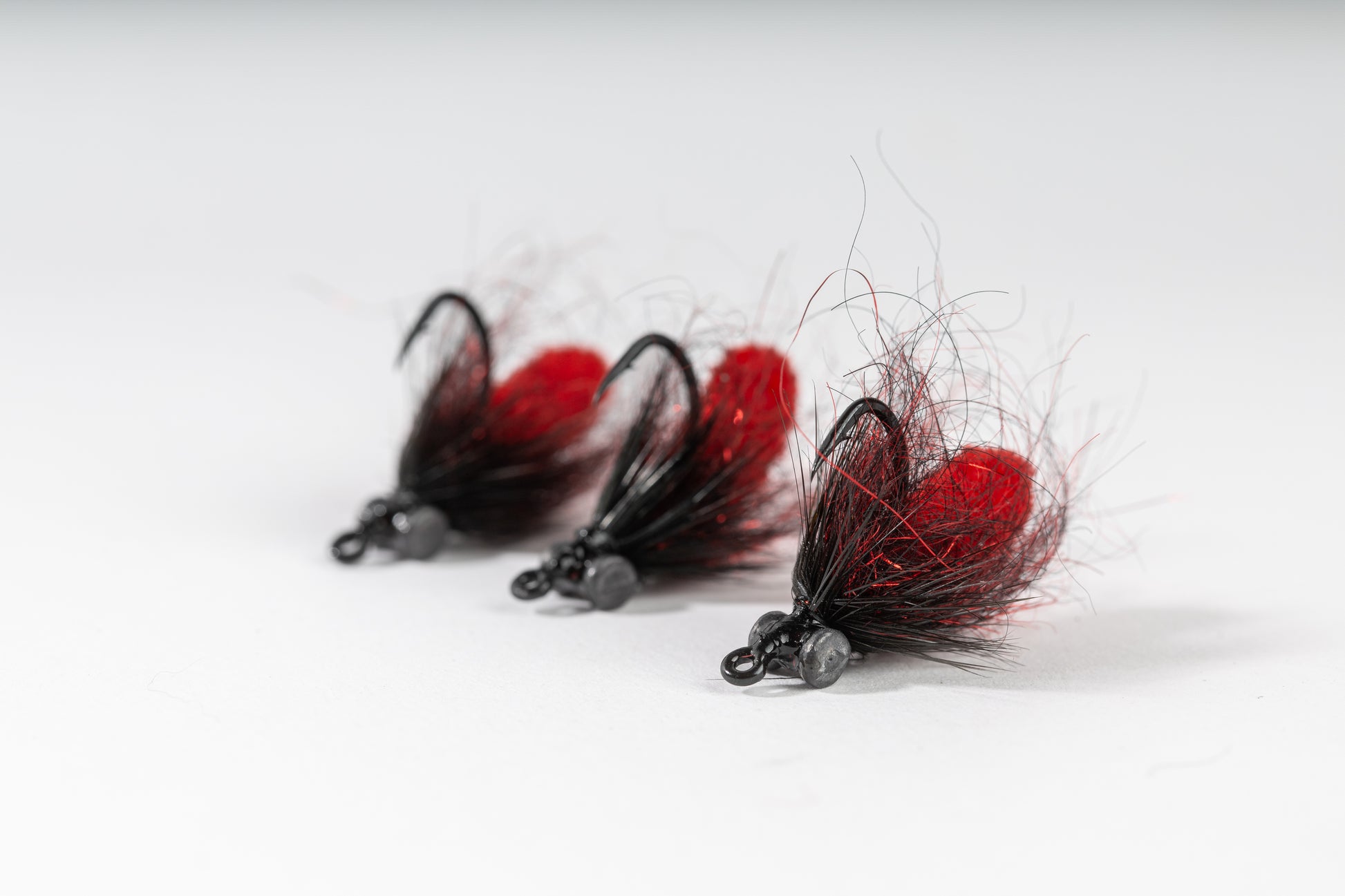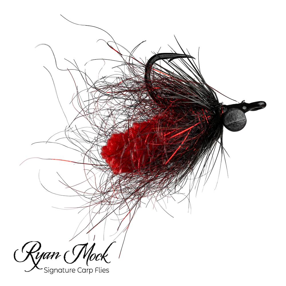 "The Blood Worm fly is specifically crafted to mimic one of the most irresistible food sources for carp: worms, and especially blood worms. Carp are known to forage and dig for worms, making this pattern highly effective. The fly is designed to settle on the bottom and present the enticing image of a fat, juicy blood worm head poking out of the mud. The body features a black and red semi-seal leech material, with the black providing excellent visibility in muddy water, and the red accents suggesting the worm’s head emerging from the substrate. The head of the fly is crafted from a mop material, inspired by innovative mop fly patterns, and creates that perfect, juicy profile that carp can’t resist. The Blood Worm fly is a fantastic choice for anglers fishing in muddy-bottom waters, offering a realistic and irresistible presentation."
