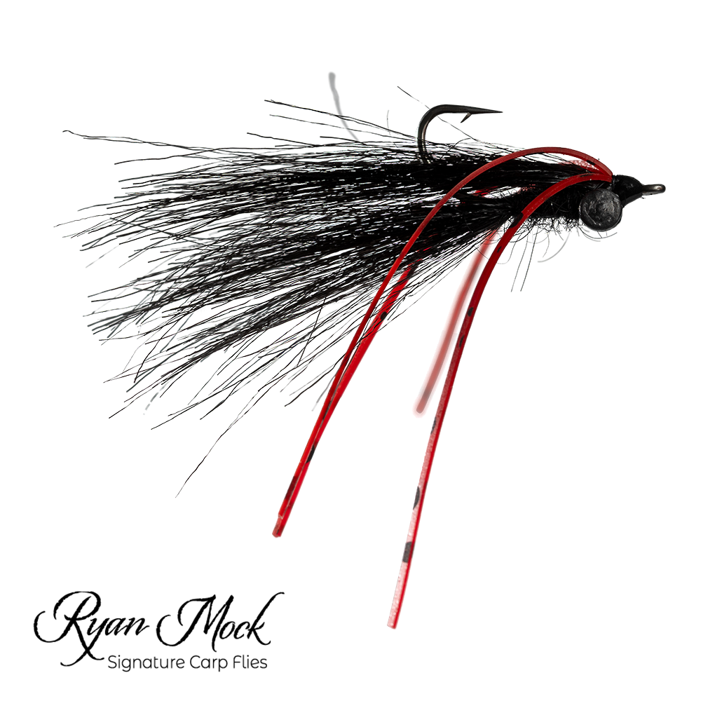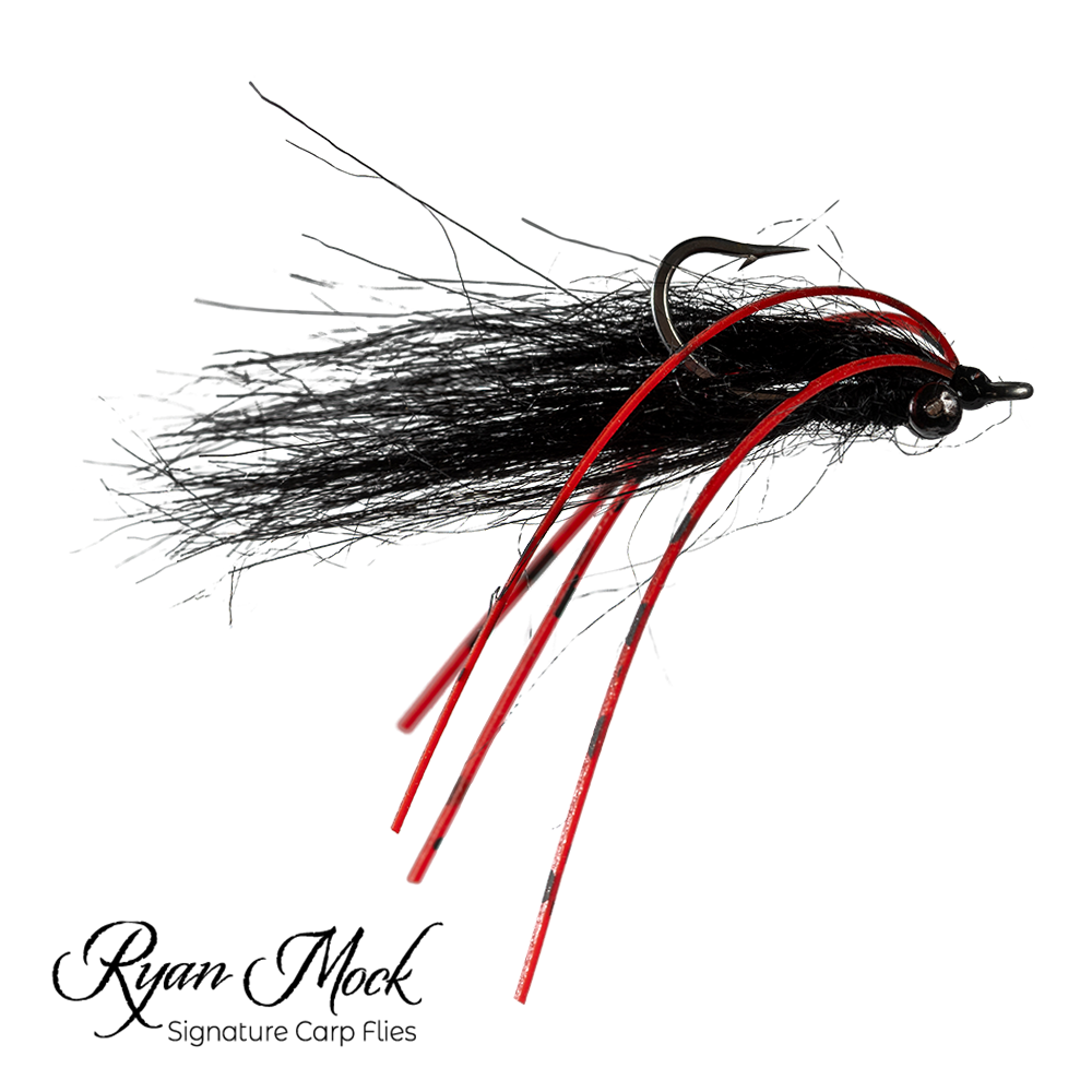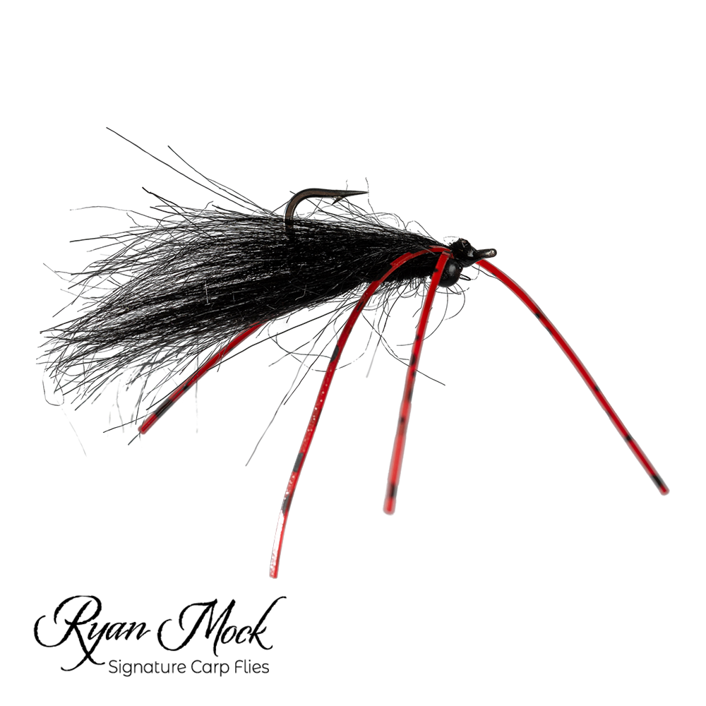 "The Carp Maul is the result of extensive experimentation and innovation in the world of carp fly fishing. Initially inspired by traditional patterns like the Hybrid, the Carp Maul has evolved to meet the unique challenges of targeting carp on flats. Unlike traditional heavy dumbbell-eyed flies, the Carp Maul uses a combination of black synthetic craft fur for both its tail and wing, providing a subtle yet highly visible profile in various water conditions. The addition of red and black rubber legs not only helps the fly flip over quickly, ensuring the hook point rides up, but also serves as an irresistible trigger for curious carp. The black color of the fly, contrasted with the vibrant red legs, has proven to be especially effective, drawing in fish even in challenging conditions. The Carp Maul truly stands out as a versatile and reliable pattern, perfect for anglers looking to up their carp game.