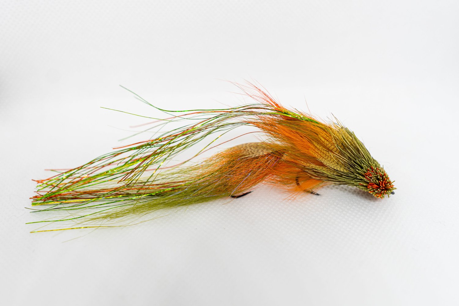This fly can be fished with on a 6-8 weight rod and is recommended to be used with a sink-tip line.