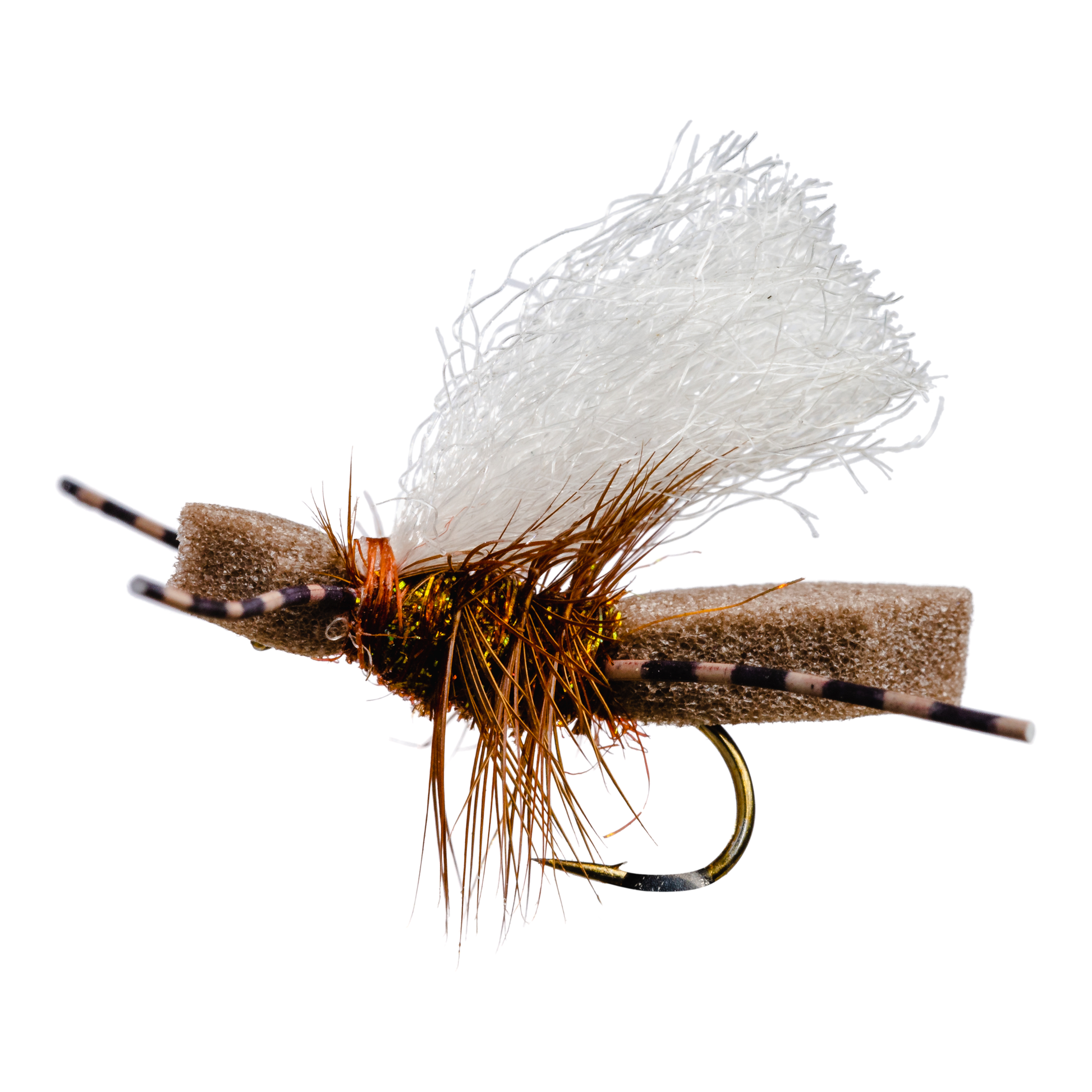 The wing paired with the foam body on this fly will float for days. We love this fly over the original because of the trimmed hackle in the middle to add realism, floatability, and eats.