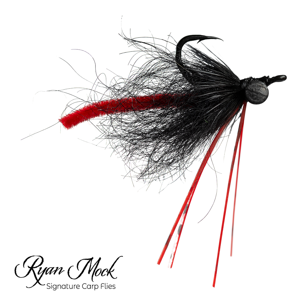 "The Maul Hybrid is the perfect fusion of two of the most iconic and effective carp flies: John Montana’s Hybrid and the Carp Maul. This fly is designed for versatility, excelling in scenarios where a traditional drag-and-drop technique might not be ideal. The Mall Hybrid carries forward the Carp Maul’s strengths, particularly its effectiveness as the fly descends through the water, thanks to the black synthetic dubbing body, the ultra chenille tail, and the vibrant rubber legs. Once the fly settles on the bottom, it mimics the profile of a freshwater mussel or clam, much like the traditional Hybrid. The addition of saddle hackle gives the Mall Hybrid a buggy look and helps it stand on its head, ensuring the bright red chenille tail remains visible and enticing. Overall, the Maul Hybrid offers the best of both worlds, making it an essential pattern for any carp angler’s fly box."