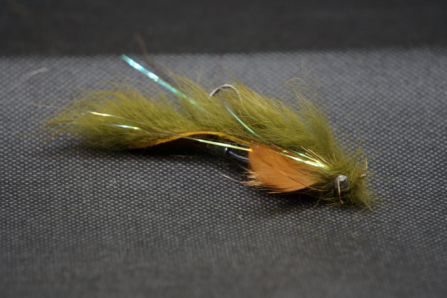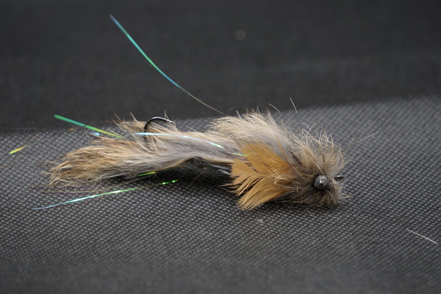Cousin to the Zonk (with more bells a whistles), Scooter Pie appeals to trout similar to how apple pie appeals to red blooded Americans. Even when stuffed with a hearty meal, one more piece is hard to refuse. It rides with the hook point up equipping it as the ideal streamer for riverbed transitions, drop-offs, and mid-river fishing. The head bumps along the bottom but (unlike your angry ex) rarely hangs-up because of the hook-point-up feature. Natural sculpins have proportionally large pectoral fins and the hackle tied toward the head imitates that appearance, adding life-like movement for an enticing presentation.