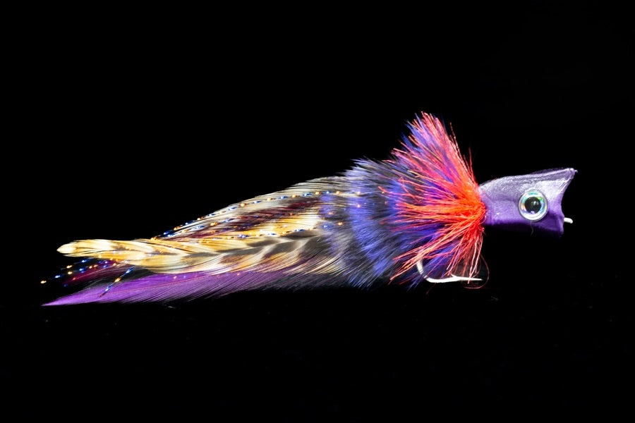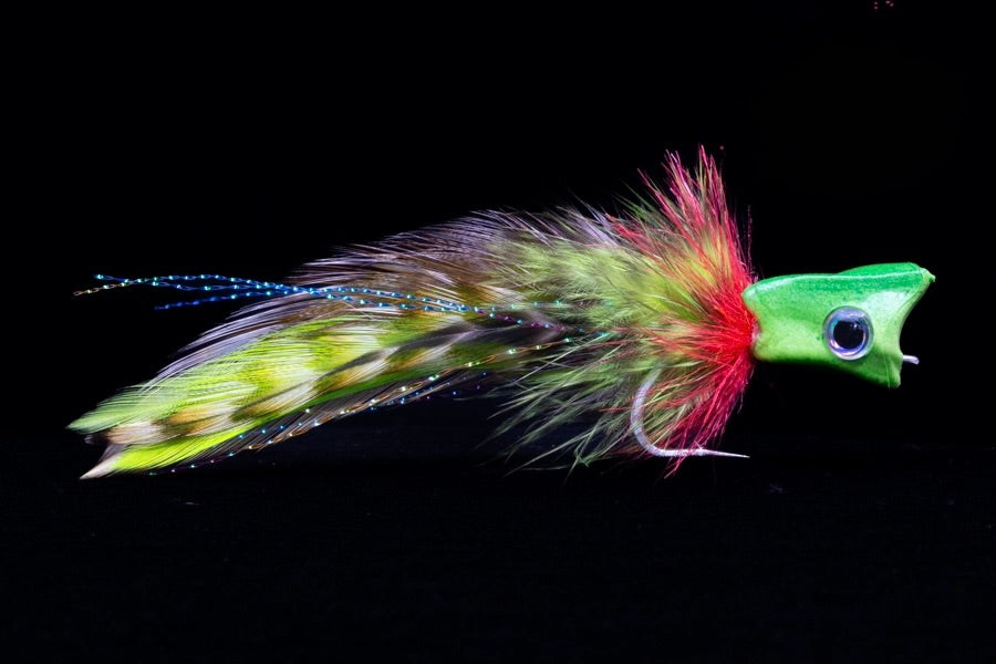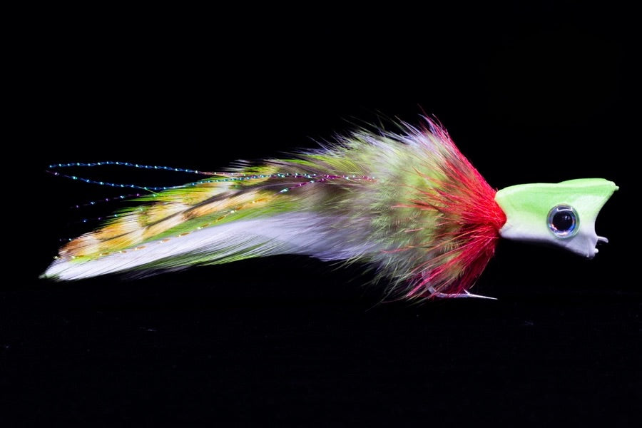 The wildest & most innovative popper design there is. The Swamp Donkey is made with the Gnarly Headz popper head. This aerodynamic head allows for easy casting without sacrificing any action. With a baitfish body and a popper head this is the #1 topwater fly for big bass that we've found!